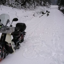 先週ひれはしカブさんと雪道を求め走りに行って来ました。自宅付近の道は雪が消えてしまってるので、豪雪地帯の大井沢に行くも路面にはほとんど雪無し (;^_^Aんだらば月山の麓にある志津まで上るも期待外れの雪無し (-"-;A ...アセアセそれならばと林道だべって事になりチ ...